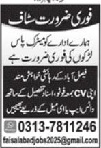 Private Company is inviting applications for the following vacancy as per the job advertisement published in the daily Jang Newspaper on 23 May 2025 for the location Faisalabad, Punjab, Pakistan: